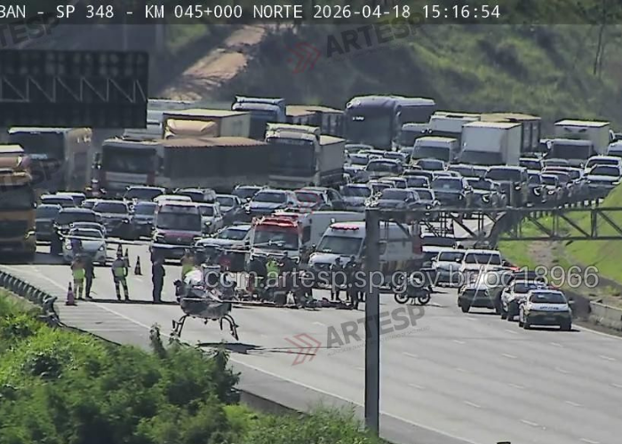 Um acidente foi registrado na tarde deste sábado (18), na altura do quilômetro 45 da Rodovia dos Bandeirantes, sentido sul, em Jundiaí. Segundo a Artesp, o helicóptero águia, da Polícia Militar, fez um pouso no local para auxiliar no socorro de uma vítima em estado grave. Todas as faixas precisaram ser interditadas.