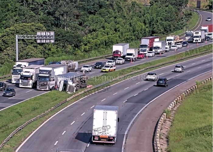 Segundo informações da Artesp, a carreta trafegava pela rodovia quando, por motivos ainda a serem esclarecidos, o motorista perdeu o controle da direção e o veículo tombou no canteiro central da pista. Apesar do impacto, o acidente deixou duas vítimas com ferimentos leves e uma pessoa ilesa.