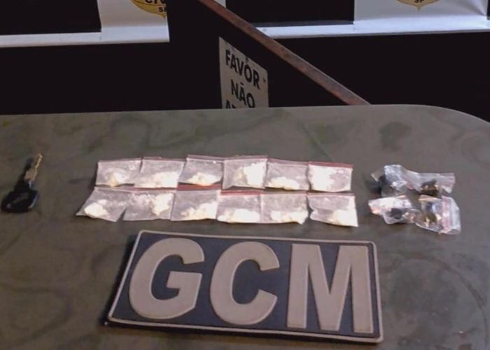 Na motocicleta, que tinha sido abandonada durante a tentativa de abordagem, a equipe da GCM encontrou quatro embalagens com crack dentro do baú. Já no terreno, foram localizadas 12 embalagens com cocaína.