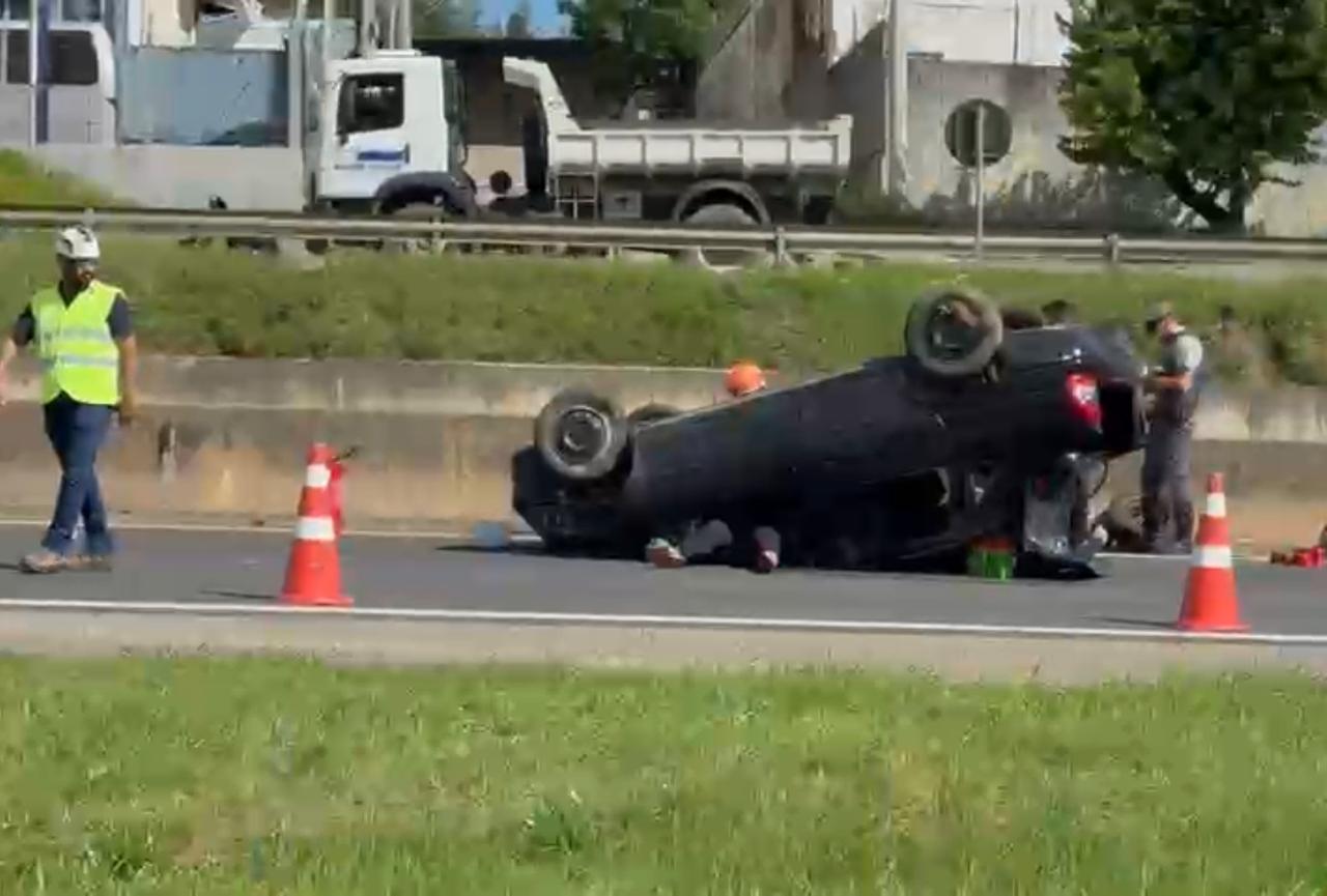 Um veículo capotou na tarde desta quinta-feira (19), no quilômetro 95 da Rodovia Raposo Tavares (SP-270), em Sorocaba. Três pessoas ficaram feridas em estado moderado e seguiram para o Conjunto Hospitalar de Sorocaba (CHS).