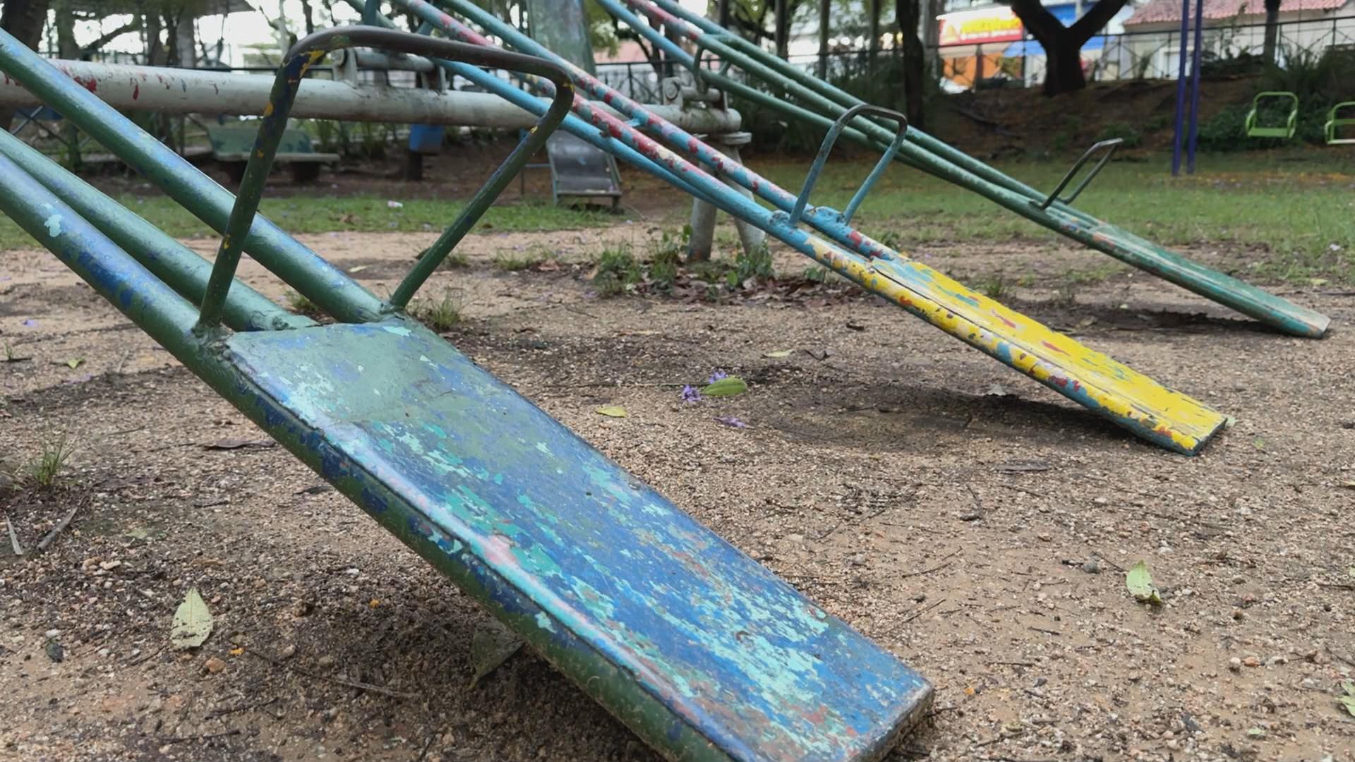 As reclamações envolvem desde rasgos nas redes dos gols do campo de futebol até brinquedos sem condições de uso no playground. A iluminação precária e a falta de manutenção – como a roçagem e limpeza – também prejudicam o uso do local. Moradores afirmam que, em dias de chuva forte, a ausência de um sistema adequado de escoamento da água provoca alagamentos, deixando a área inutilizável.