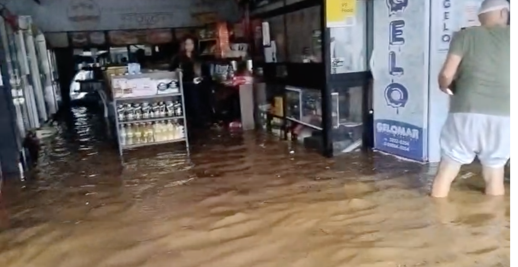 Durante a chuva, a água invadiu parte de estabelecimentos comerciais localizados ao longo da avenida. Comerciantes e moradores precisaram lidar com o alagamento provocado pela intensidade da chuva.