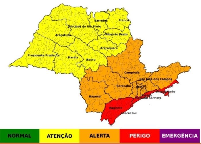 Os atuais modelos meteorológicos apontam a seguinte classificação de risco por região: risco muito alto para Vale do Ribeira, Baixada Santista, Litoral Sul e Litoral Norte; e risco alto para Itapeva, Sorocaba, Campinas, Serra da Mantiqueira, Vale do Paraíba, Capital e Região Metropolitana de São Paulo.