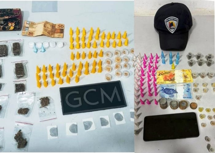 No primeiro caso, à 0h25, os guardas flagraram uma ação de tráfico nas imediações da Rua Joaquim Cabral, no Jardim Nova Manchester. Naquele momento, a equipe avistou dois indivíduos em atitude suspeita. Quando a viatura se aproximou, um deles fugiu e não foi localizado. Já o comparsa, de 25 anos, permaneceu no local e os agentes o abordaram.