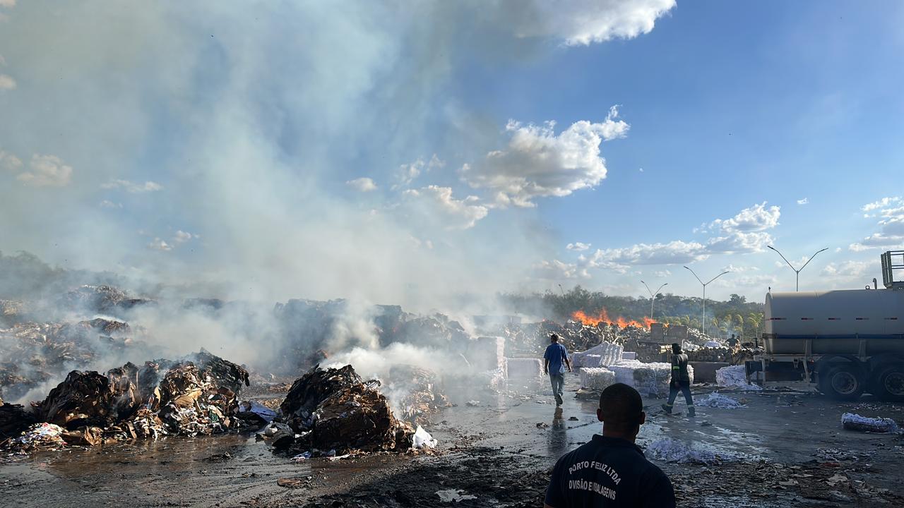 Imagens gravadas no local mostram a intensidade das chamas, que destruíram grande parte do galpão.